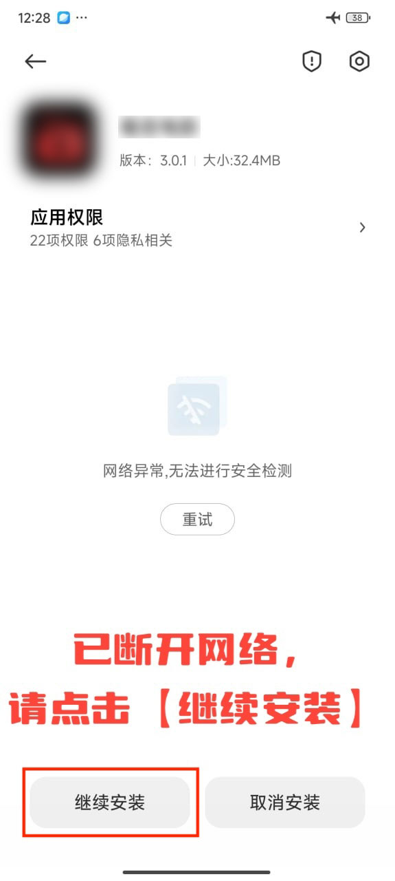 由于各手机厂商的限制,如果安装过程中出现异常,可以尝试以下操作